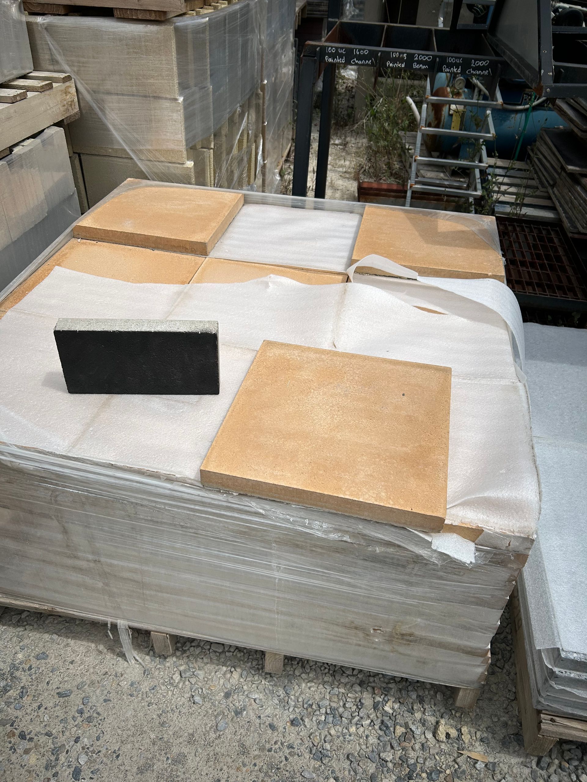 400x400x40mm straight edge concrete pavers in Sandstone colour available now.