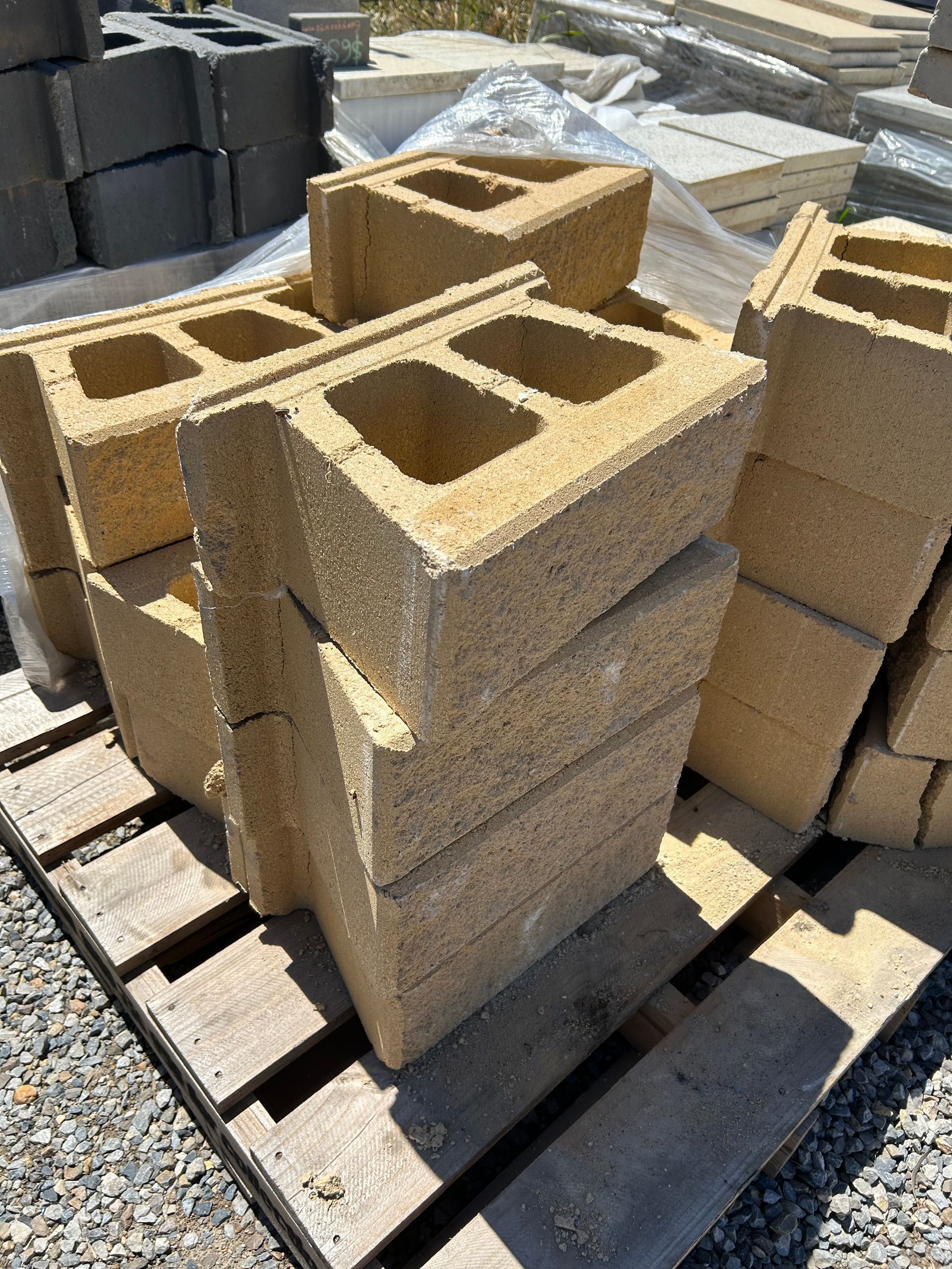 Seconds Stone max retaining wall blocks in Sahara colour and split face finish available.